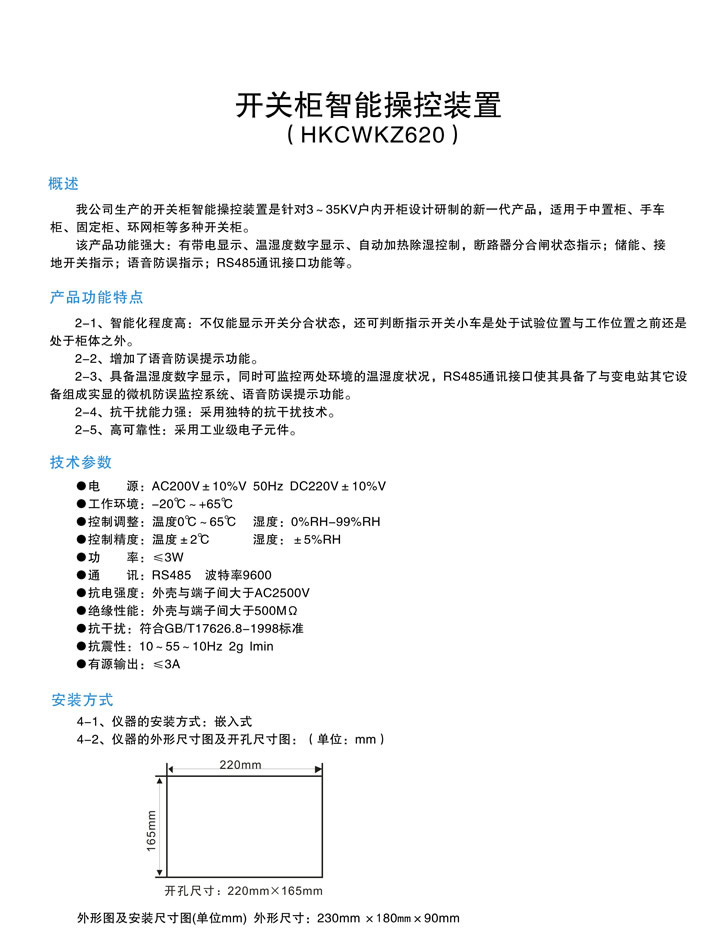 - 產品簡介:???HKCWKZ620開關柜智能操控裝置