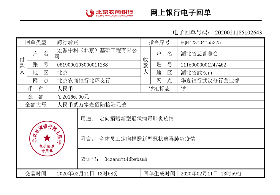 近日,宏源中科為幫助打贏新型冠狀病毒感染的肺炎疫情防控阻擊戰,公司組織發起病毒無情,人間有愛”捐款活動,全體員工積極響應支持新型冠狀病毒感染的肺炎疫情防控,通過“湖北省慈善總會”投入對湖北防疫新型肺炎的幫扶救助工作。共募集資金20166元。
