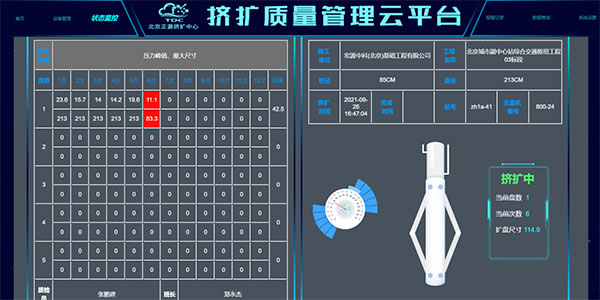 宏源中科(北京)基礎(chǔ)工程有限公司承接了此項(xiàng)目部分樁基工程,采用專(zhuān)有的擠擴(kuò)支盤(pán)灌注樁技術(shù)。在施工過(guò)程中,應(yīng)用可視化支盤(pán)質(zhì)監(jiān)儀檢測(cè)設(shè)備,可以實(shí)時(shí)直觀的看到地下擠擴(kuò)機(jī)的擠擴(kuò)動(dòng)作,并把擠擴(kuò)尺寸實(shí)時(shí)反映在操作屏上,并同步上傳至云端及客戶(hù)端。解決了支盤(pán)樁擠擴(kuò)隱蔽性強(qiáng)、質(zhì)量不易控制的缺點(diǎn);在出現(xiàn)不符合設(shè)計(jì)要求時(shí)及時(shí)報(bào)警提醒,同時(shí)將擠擴(kuò)數(shù)據(jù)生成表格作為項(xiàng)目質(zhì)量檢測(cè)資料。該檢測(cè)設(shè)備采用工序中過(guò)程監(jiān)測(cè)和完成后成果檢測(cè)保證了支盤(pán)樁全流程質(zhì)量控制。